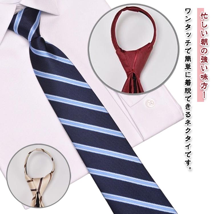 ネクタイ ワンタッチ 無地 結ばない 簡単装着 クイックネクタイ ワンタッチネクタイ ネイビー チェック ストライプ 簡単 おしゃれ オシャレ メンズネクタイ ワンタッチタイ ネクタイワンタッチ ジッパー 紳士 クイック 男性 大人 濃紺 ワイン 30745【メール便 送料無料】