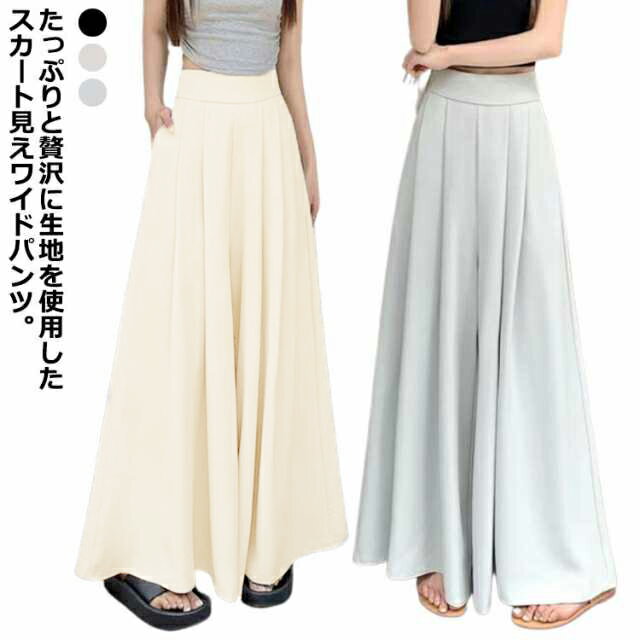 パンツ ボトムス パラッツォ スカーチョ スカンツ フレア シフォン プリーツ 薄手 重ね ロング丈 きれいめ ゆったり 大きいサイズ 涼しい 透け感 上品 春夏 夏 レディース パンツ・ズボン