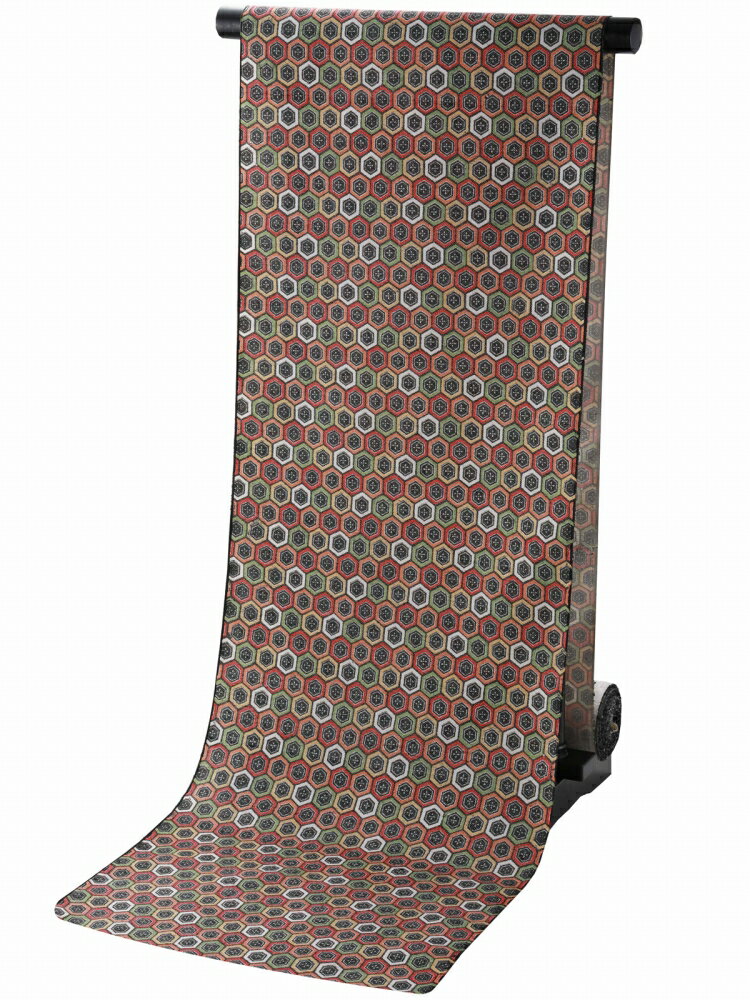 【新品】 結城紬 着物 反物 正絹 着尺 100亀甲 奥順 はたおり娘 真綿紬 深緑地 笹竹丸文 カジュアル 春 秋 冬 未仕立て 未使用 みやがわ sb11884