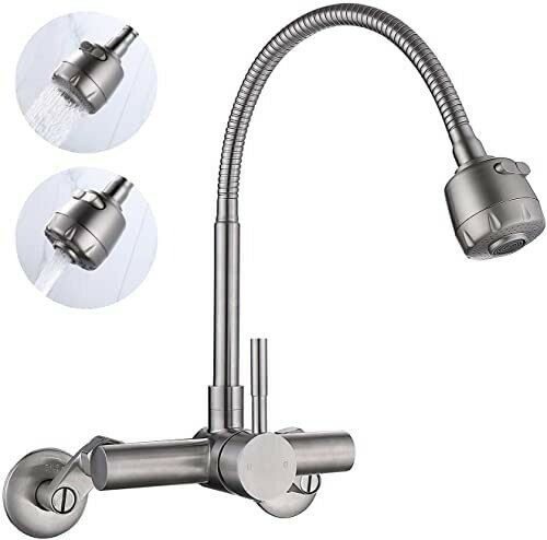 蛇口ホース引き出しタイププルダウンスプレー付きシングルレバーグースネックタイプシンク用真鍮製混合栓…