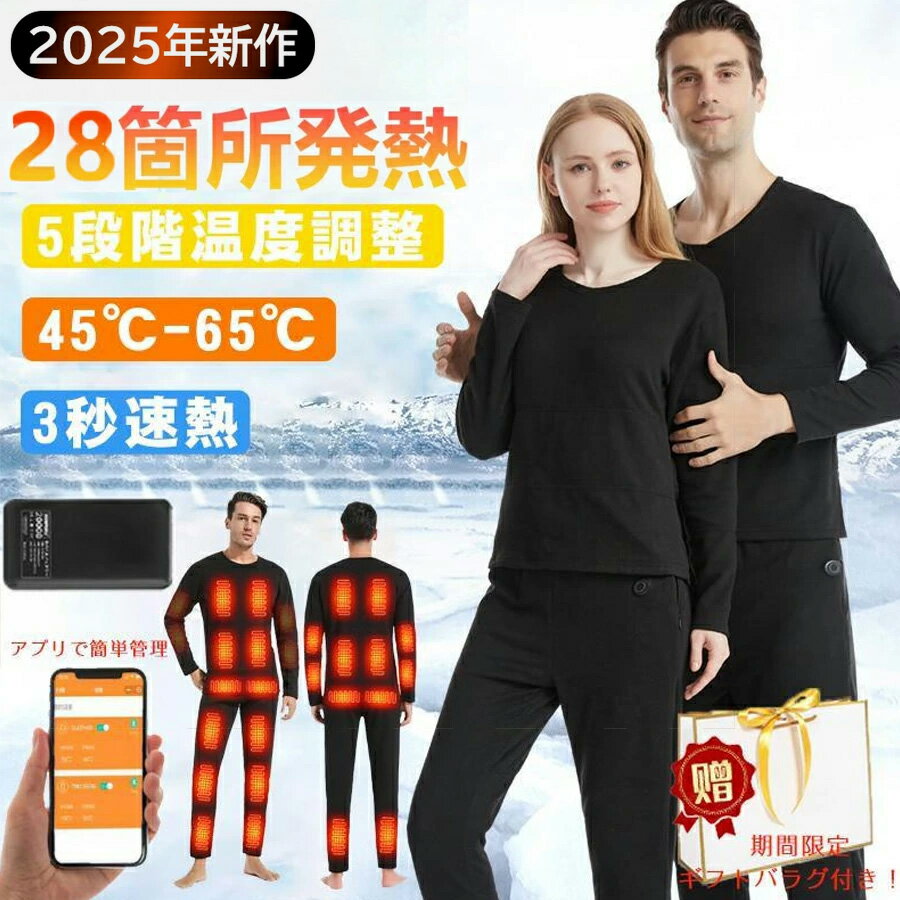 インナー 上下セット 日本製ヒーター 22/28箇所発熱 USB給電式 3段階温度 スマホ操作 メンズ レディース 発熱シャツ