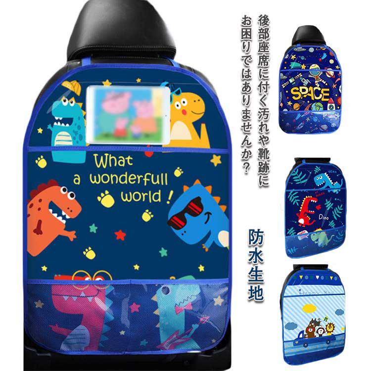 収納 ドライブポケット 車 防水生地 靴の汚れ防止 カラフル キックカバー カバー 後部座席 収納ポケット キックマット 小物入れ キックガード シート 装着簡単 カー用品 シートバックポケット 可愛い アニマル 動物柄 子供 キッズ キック防止マット