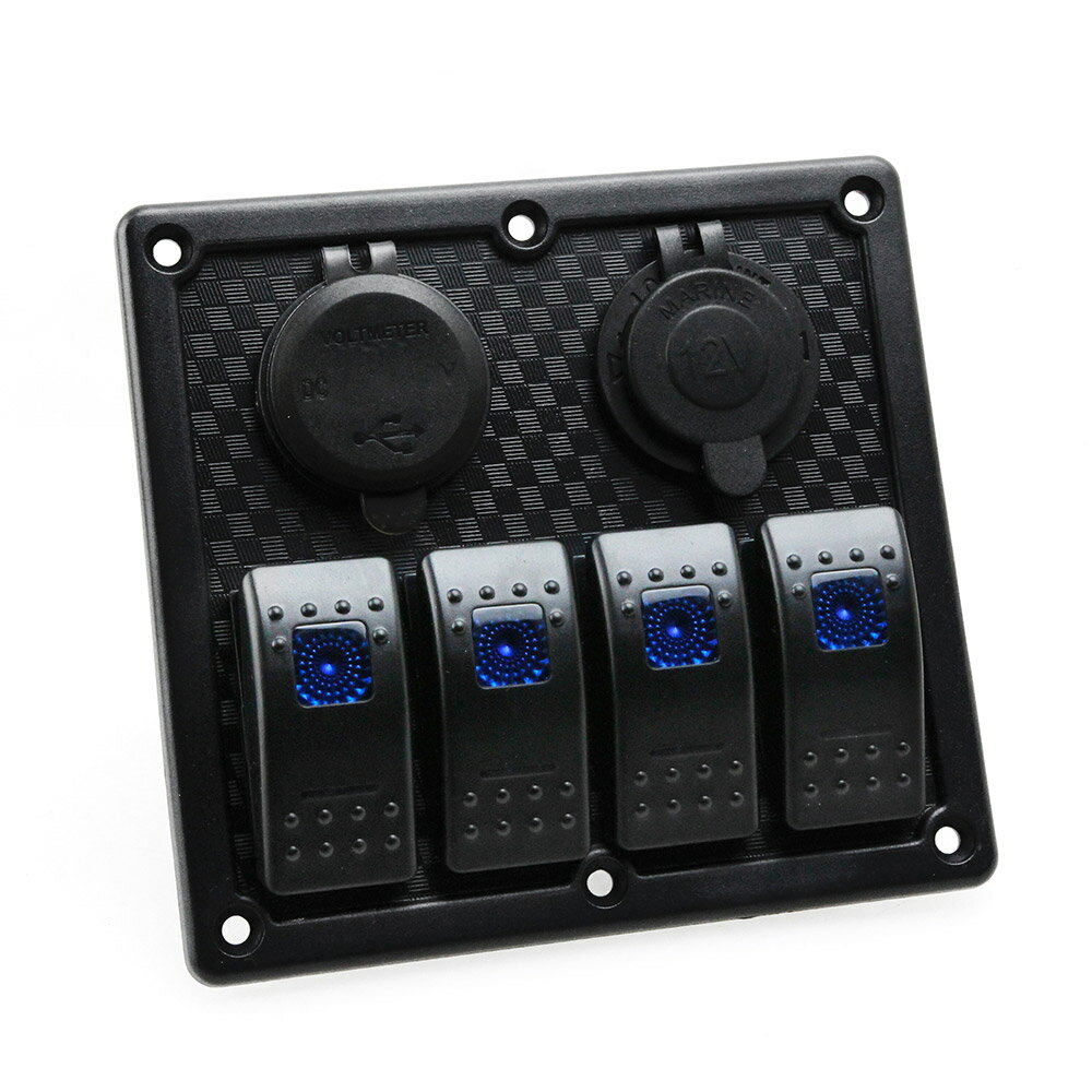 QC3.0急速充電USB(青LED電圧計内蔵)+シガーソケット+LED表示4連スイッチ 埋め型3in1増設ポート 12/24V車用や船舶等に TOKUTOYO(トクトヨ)