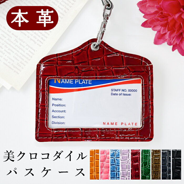 パスケース レディース 本革 レザー ショルダー 定期入れ IDカードホルダー IDケース カードケース 首掛け 落下防止 定期ケース 社員証 美 クロコダイル かわいい 可愛い おしゃれ 通学 通勤