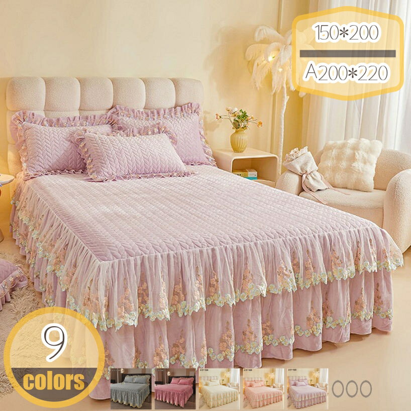 ベッドスカート レース 姫系 柔らかい 無地 北欧風 ベッドスプレッド 敷きパッド 北欧風