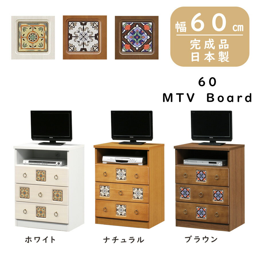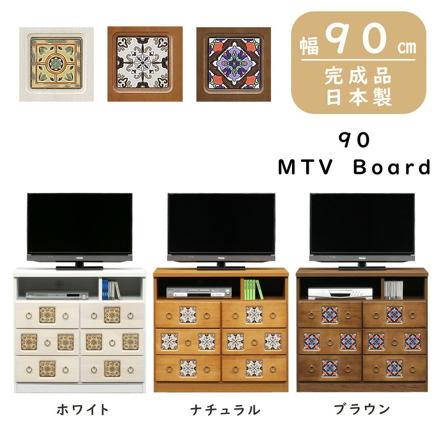 ボード ミドルローボード ミドルTV LB TV リビング収納 90幅 90cm 引出し レトロタイル タイル付き 木製 日本製 ホワイト ナチュラル ブラウン WH NA BR おしゃれ レトロ アンティーク