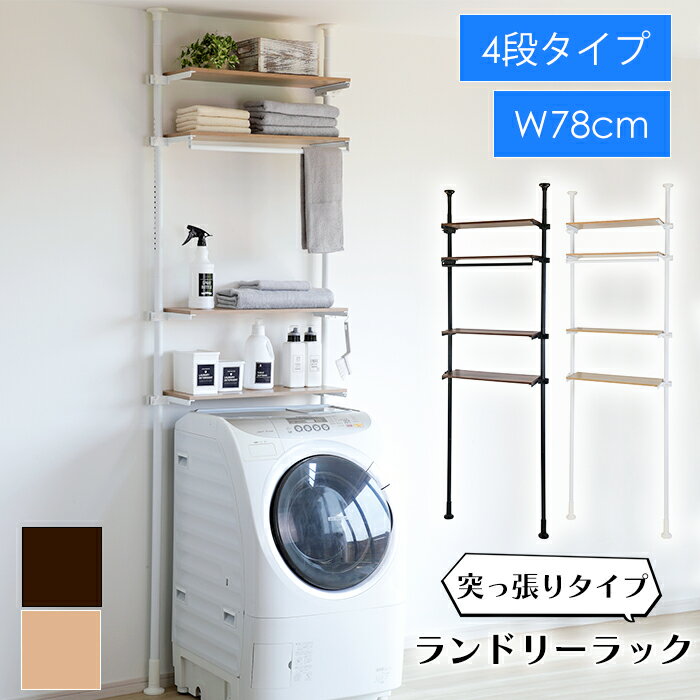 ランドリーラック 突っ張り 4段 極太パイプ ランドリー