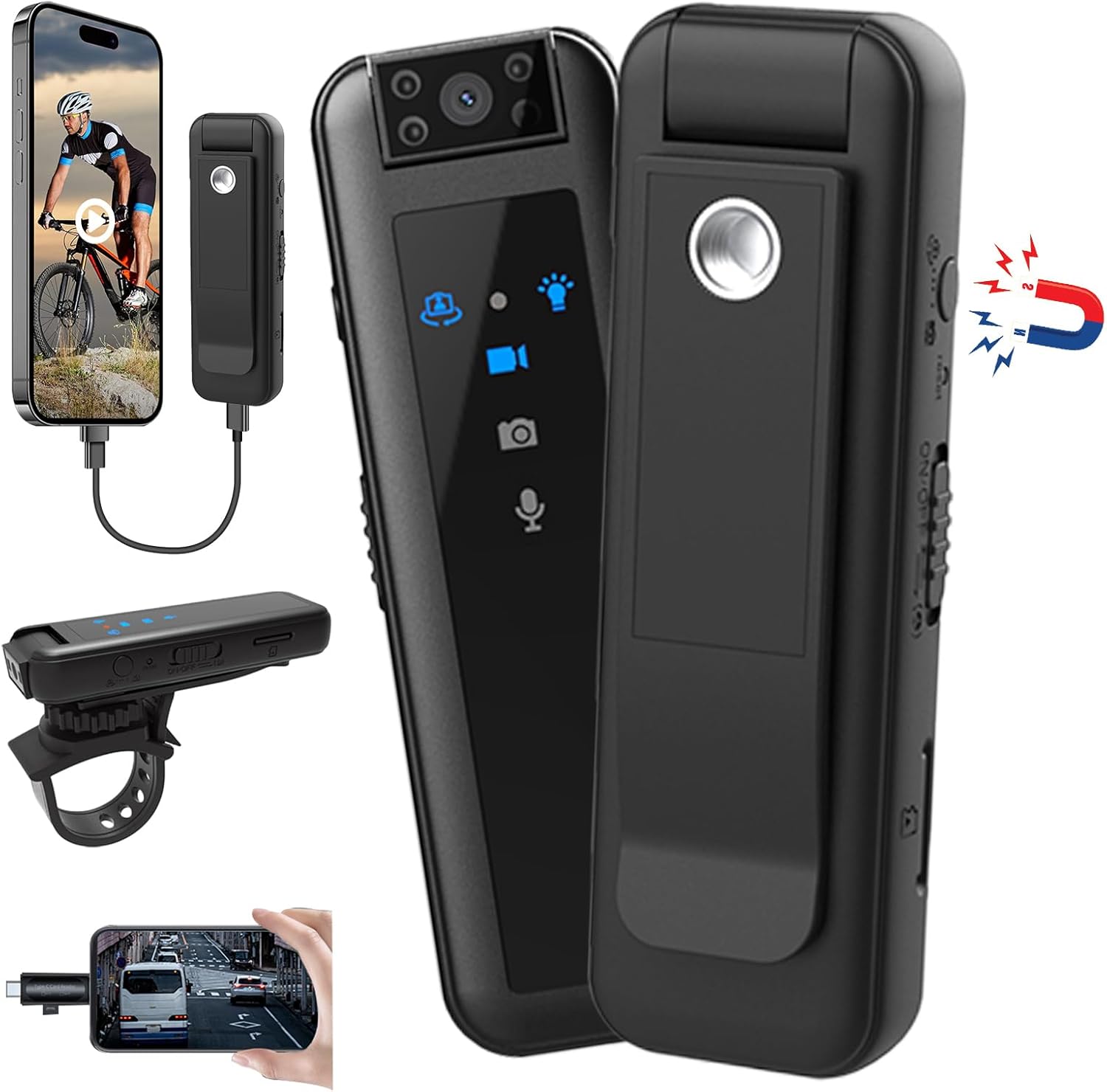 180度回転レンズ OTG対応 磁気吸着 軽量 自転車に装着のアクセサリー/クリップ付