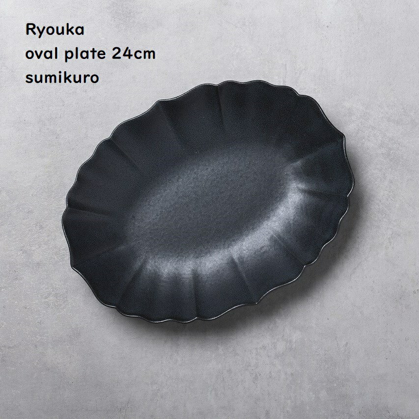 【 稜花 楕円皿 24cm 】【墨色 】 和食器 和食 和風 和カフェ カフェ食器 黒い器 長方形プレート 和モダン シック シンプル 人気食器 料理写真 ブラック 食洗機対応 電子レンジ対応