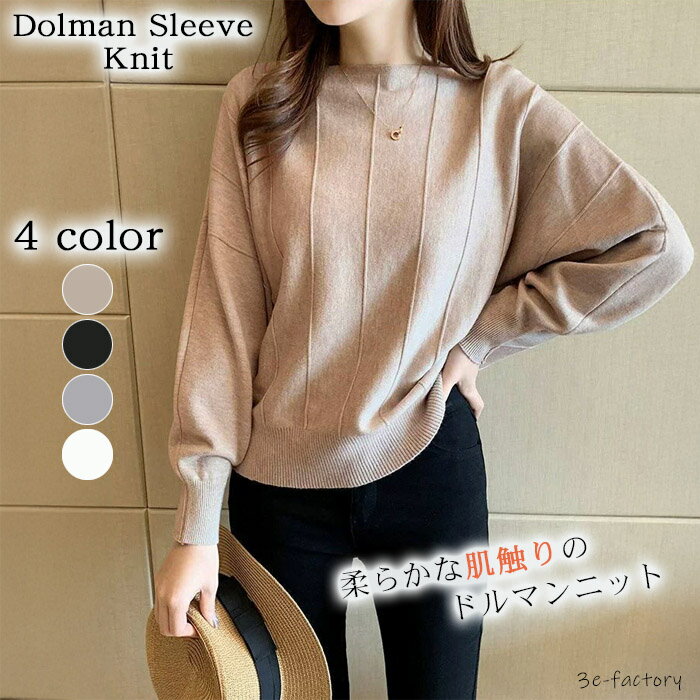 ニット ドルマンニット レディース ドルマンスリーブ トップス ニット セーター プルオーバー ボートネック ラウンドネック クルーネック 縦ライン シンプル カジュアル きれいめ かわいい おしゃれ 大人 オフィス 通勤 秋 秋物 冬 冬物 20代 30代 40代