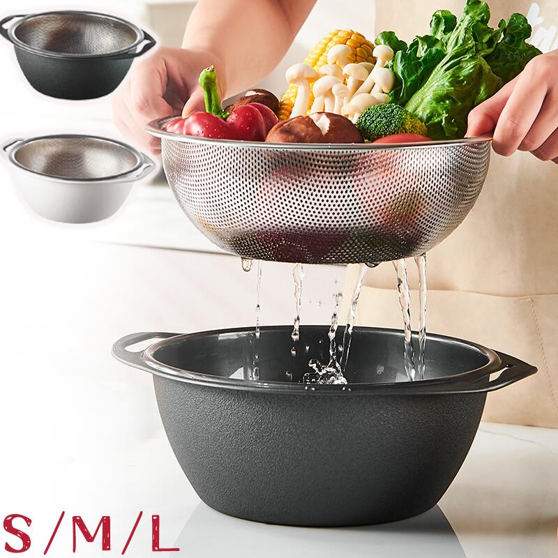 ボウル 取っ手付き ザル セット 野菜洗いかご 二層 野菜 水切り 深型 ザルボウル ストレーナー 卓上水切り 湯切り可能 野菜 ストレーナ 持ち手付き 水切りざる シンクザル 鍋切り ボウル 食器 キッチン用品 果物 19cm 22cm 25cm