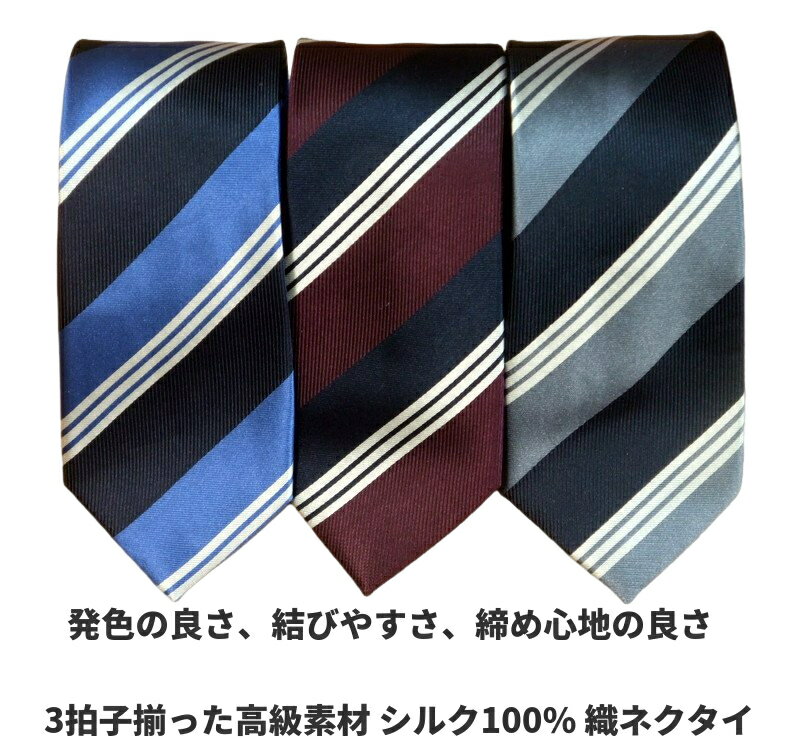 ゆうパケット送料無料!シルクジャガード ネクタイ ストライプ柄通常幅 絹100% シルク100% 正絹