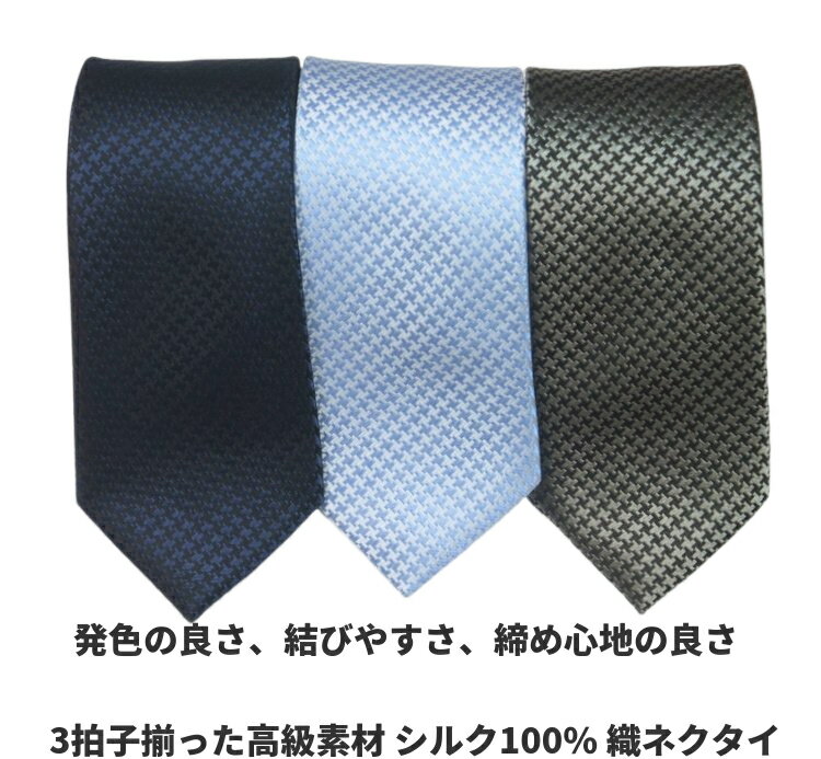 ゆうパケット送料無料!シルクジャガード ネクタイ 小紋柄 千鳥格子通常幅 絹100% シルク100% 正絹