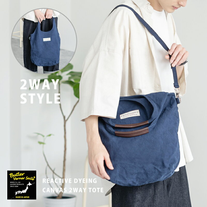 ショルダーバッグ トートバッグ メンズ 鞄 手提げ 肩掛け 牛革 キャンバス 大容量 A4 2WAY カジュアル 無地 シンプル 6号帆布 レザー 反応染め 通学 日本製 国産 Butler Verner Sails バトラーバーナーセイルズ JA-1473-3 6042