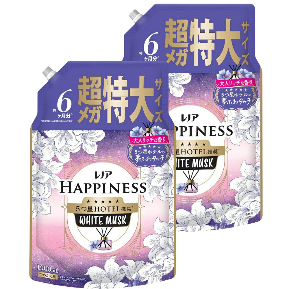 【お買い物マラソン期間中ポイント10倍】レノア ハピネス ホワイトムスクの香り 大容量 特大 メガジャンボ 詰替え 1900mL 2個セット 柔軟剤 夢ふわタッチ フルーティーな香り メガサイズ ヨレ防止 毛玉防止 清潔感 上質 フローラル 5つ星ホテル ふわふわ 部屋干し 防臭