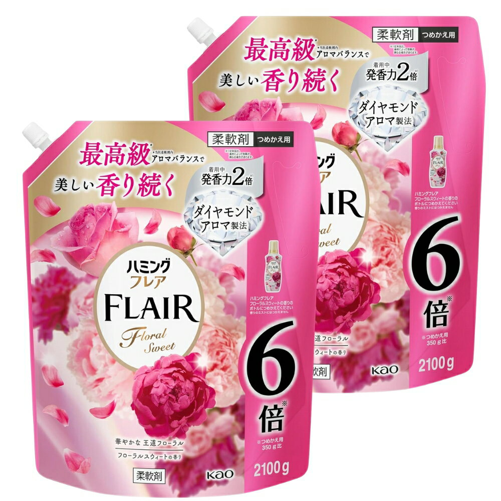 【お買い物マラソン期間中ポイント10倍】ハミングフレア フローラルスウィートの香り 大容量 特大 メガジャンボ 詰替え 2100g 2個セット フローラルスイート フレアフレグランス 柔軟剤 メガジャンボ 肌ざわり 静電気 つめかえ シワ防止 毛玉防止 抗菌 防臭 フローラル
