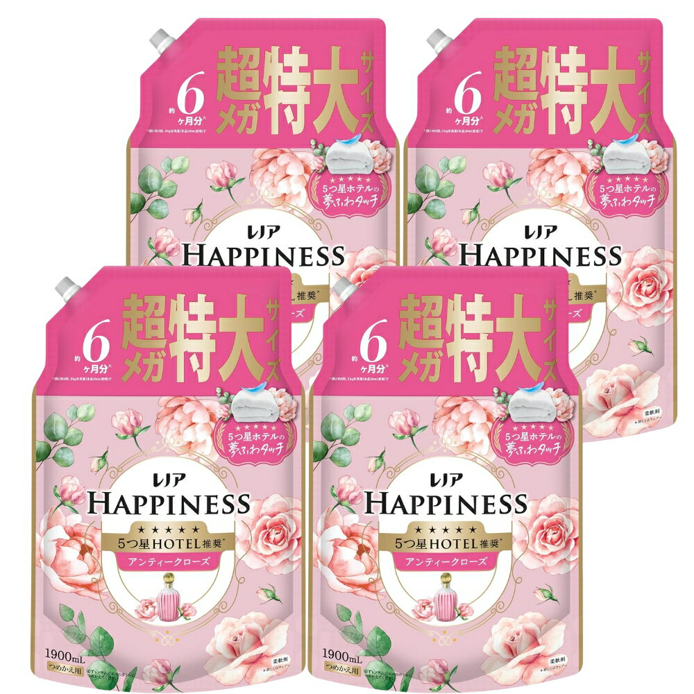 【お買い物マラソン期間中ポイント10倍】レノアハピネス アンティークローズの香り 大容量 特大 メガジャンボ 詰替え 1900mL 4個 柔軟剤 夢ふわタッチ フルーティーな香り メガサイズ ヨレ防止 毛玉防止 清潔感 上質 フローラル 5つ星ホテル ふわふわ 部屋干し 防臭 赤ちゃん