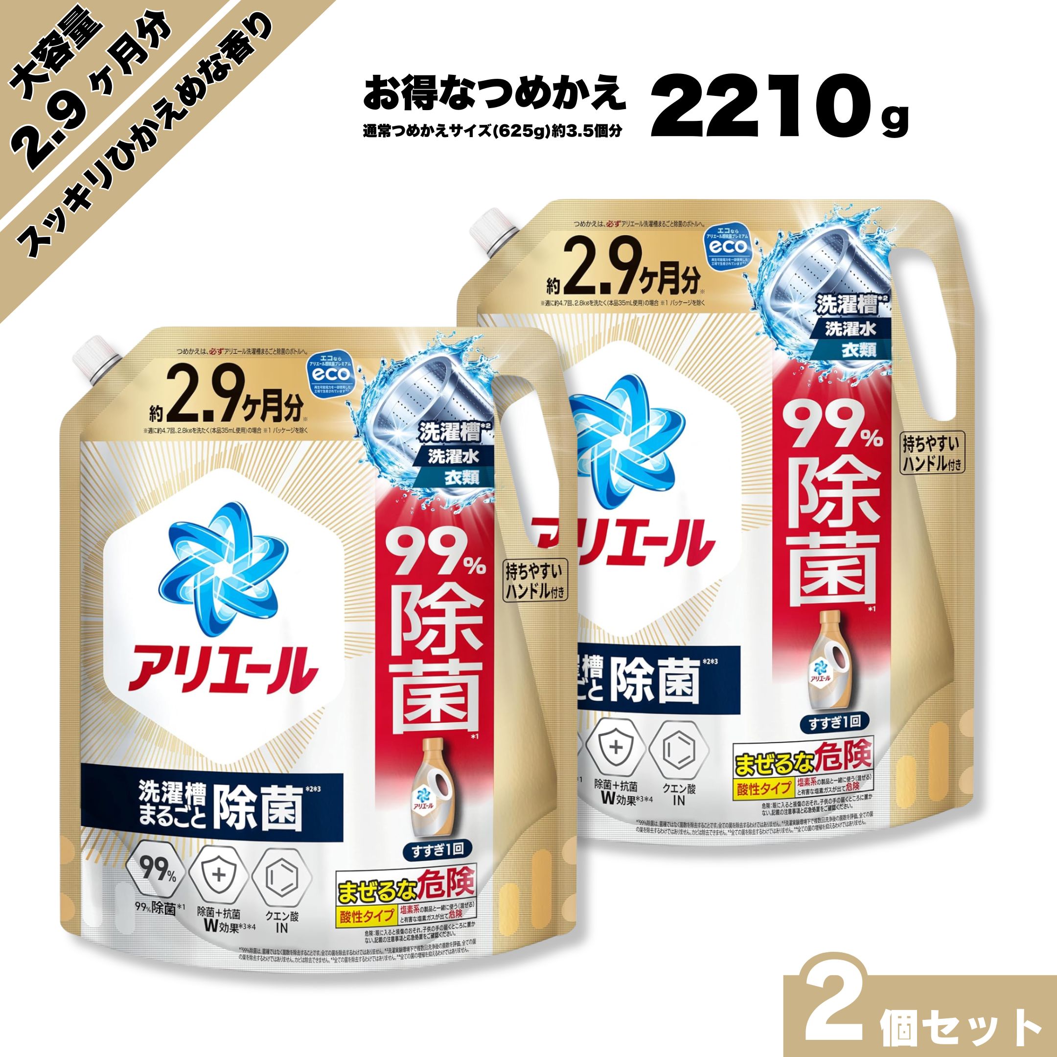 【お買い物マラソン期間中ポイント10倍】アリエール 金 洗濯槽まるごと除菌 大容量 特大 メガジャンボ 詰替え 2.21kg 2個 液体 超抗菌プレミアム スッキリひかえめな香り 詰め替え 2210g 抗菌防臭 時短 花粉対策 黄ばみ 黒ずみ 皮脂汚れ 清潔感 洗濯槽カビ対策 柔軟剤