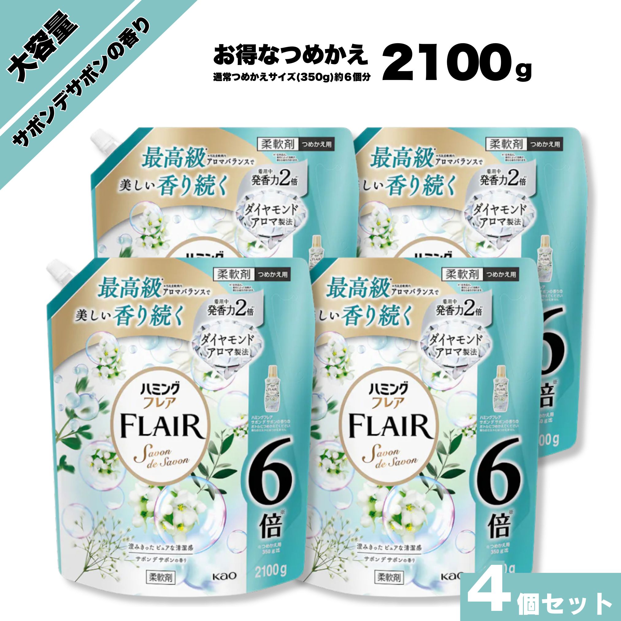 【お買い物マラソン期間中ポイント10倍】ハミングフレア サボンデサボンの香り 大容量 特大 メガジャンボ 詰替え 2100g 4個 フレアフレグランス 柔軟剤 メガジャンボ 肌ざわり 静電気 つめかえ シワ防止 毛玉防止 抗菌 防臭 フローラル 爽やか 消臭 アロマ 香り続く