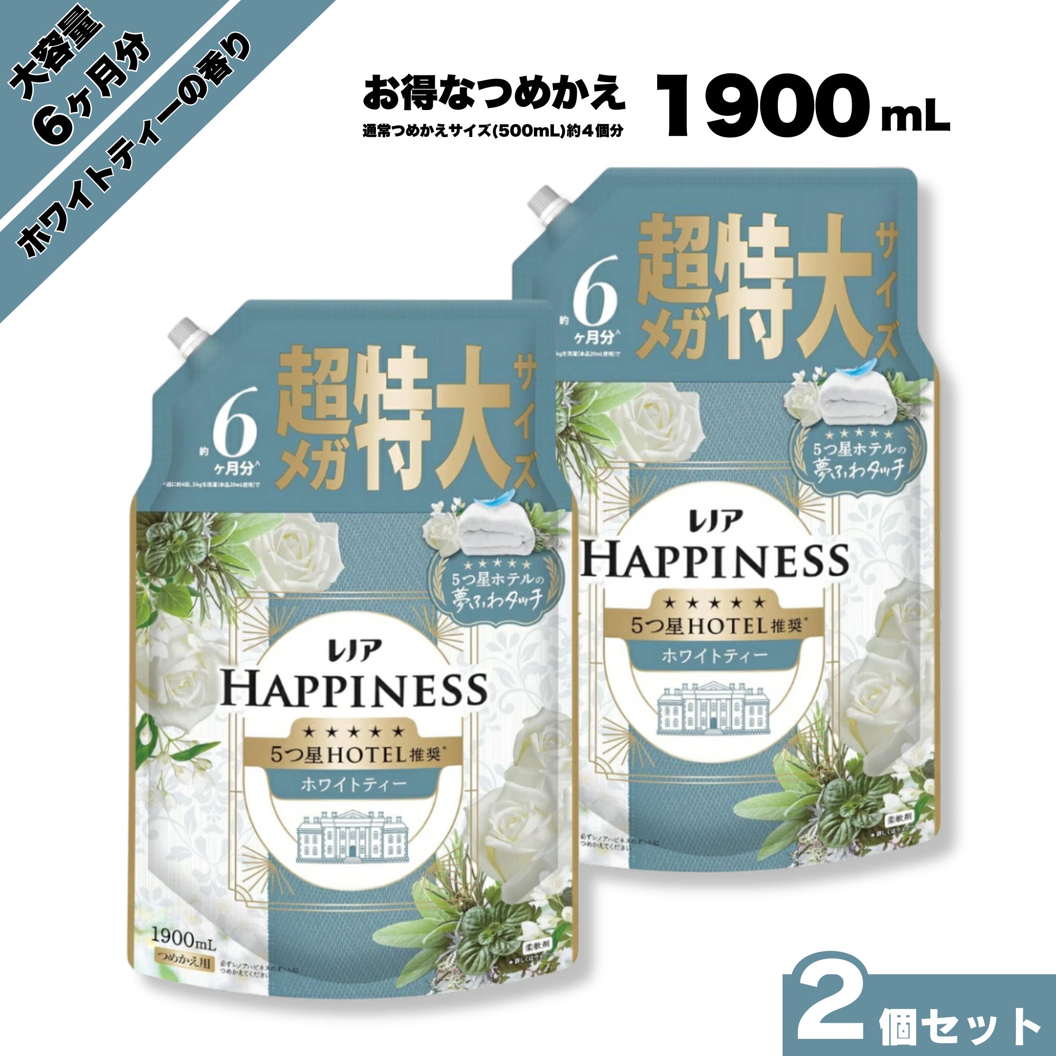 【お買い物マラソン期間中ポイント10倍】レノアハピネス ホワイトティーの香り 大容量 特大 メガジャンボ 詰替え 1900mL 4個 柔軟剤 夢ふわタッチ フルーティーな香り メガサイズ ヨレ防止 毛玉防止 清潔感 上質 フローラル 5つ星ホテル ふわふわ 部屋干し 防臭 赤ちゃん