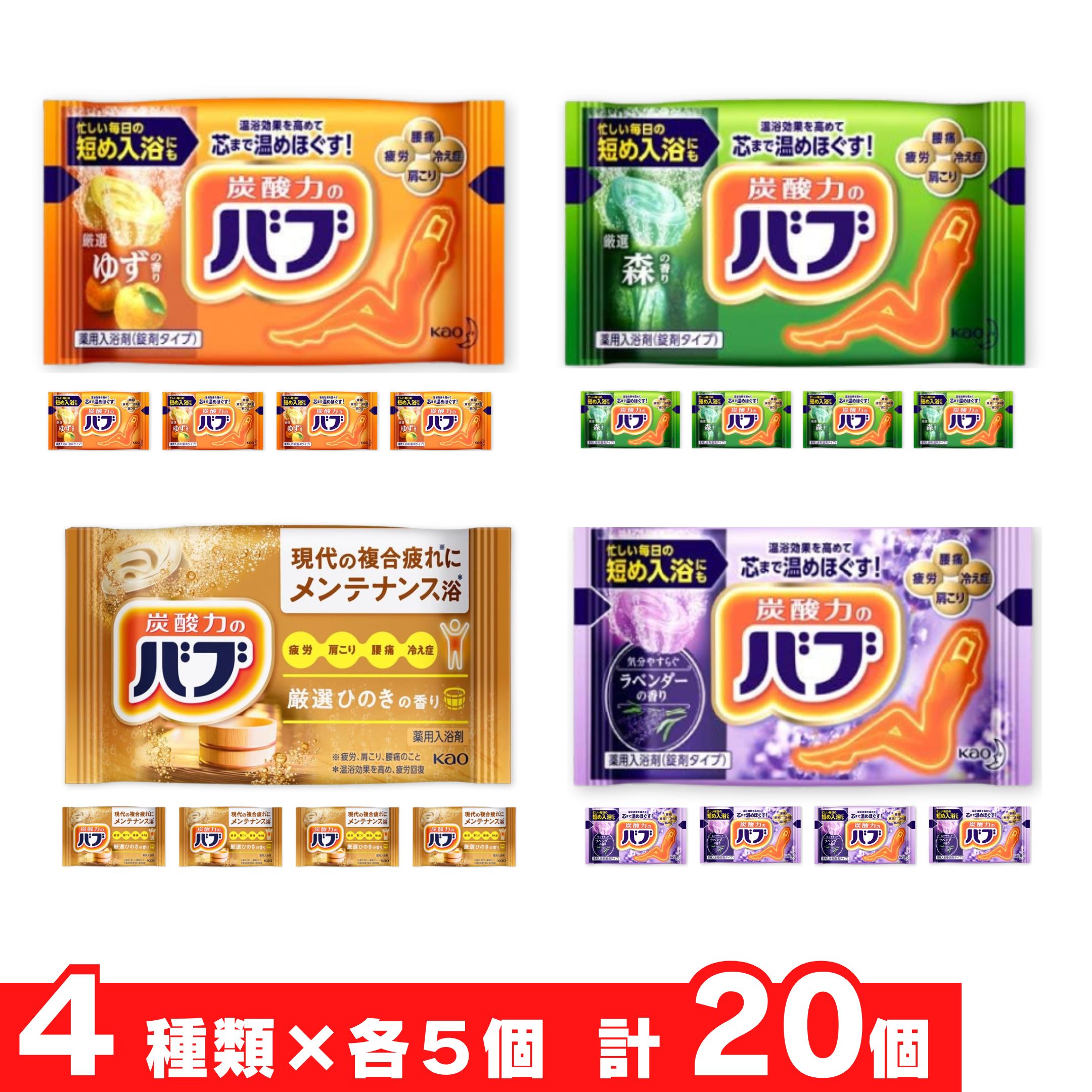 【1000円ぽっきり】バブ 4種類 計20個 炭酸力のバブ 入浴剤 炭酸 大量 ゆず ラベンダー 森 ひのき コストコ アソート