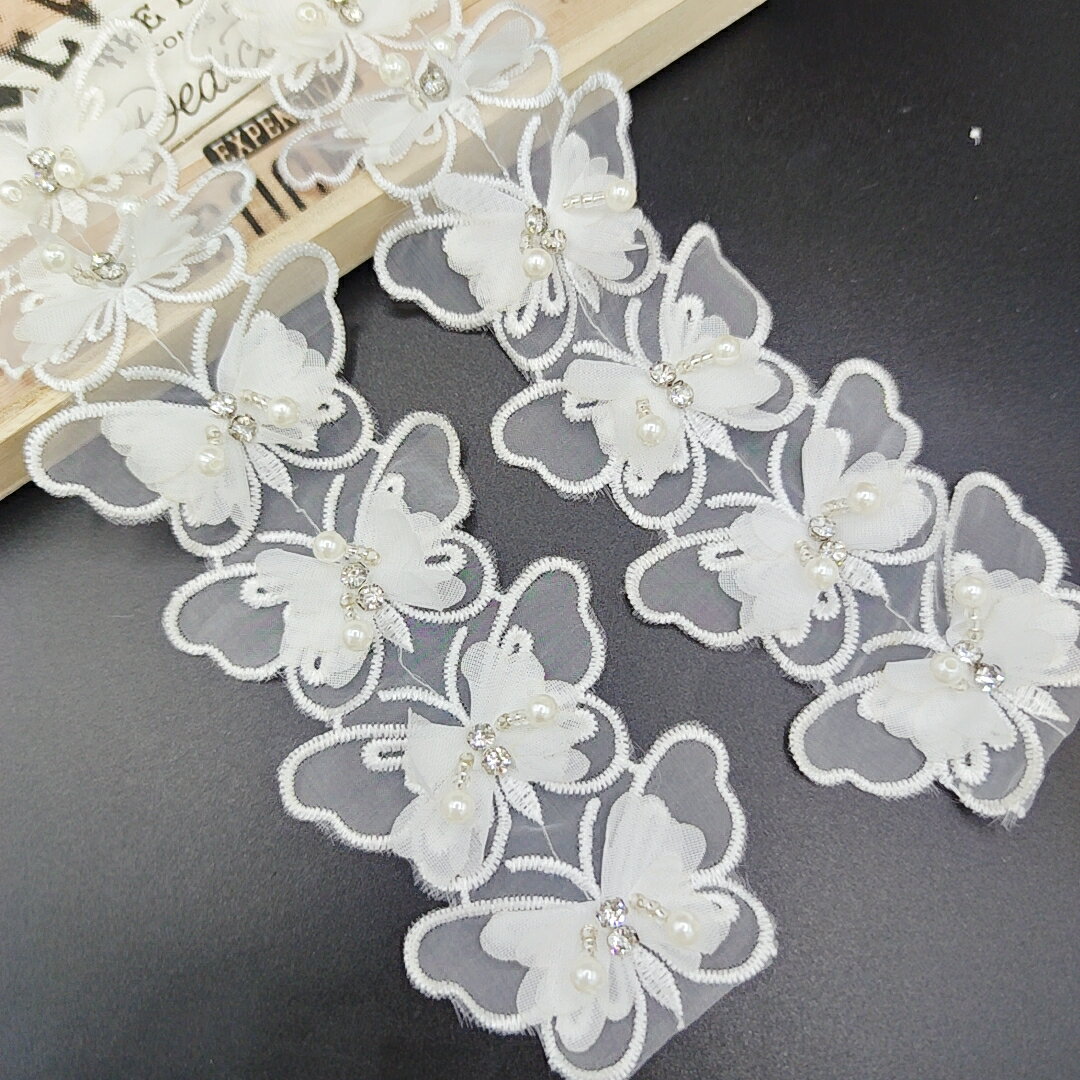 ホワイト 生地 糸 花 刺繍 ケミカル モチーフ 飾り ドレス 1m レース カーテン