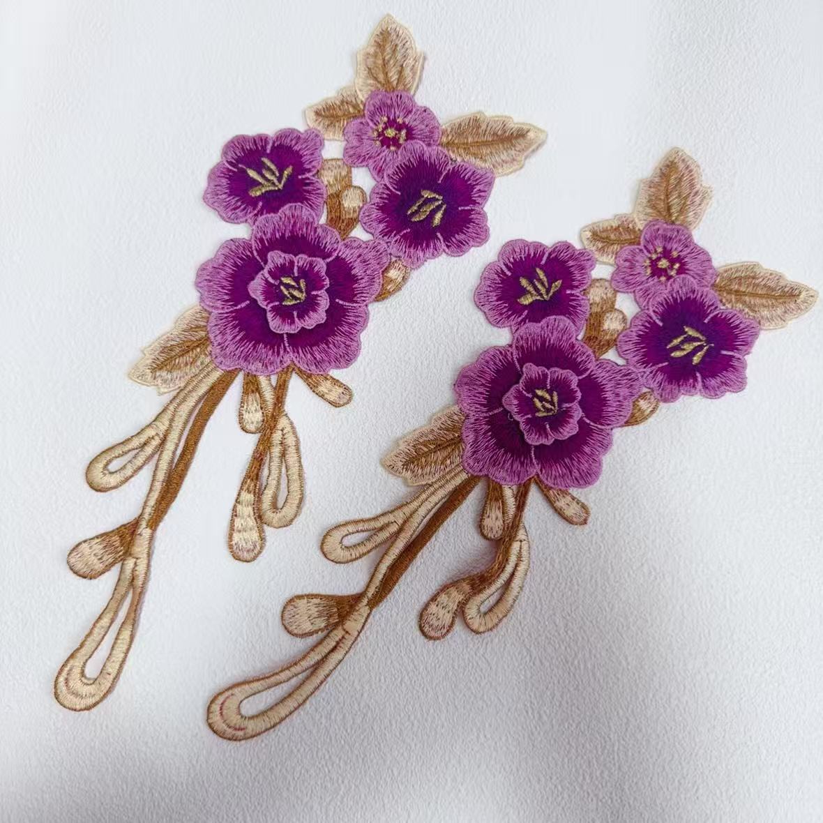 レース 花 梅 パープル 2枚 素材 花 ケミカル モチーフ 刺繍 花芯