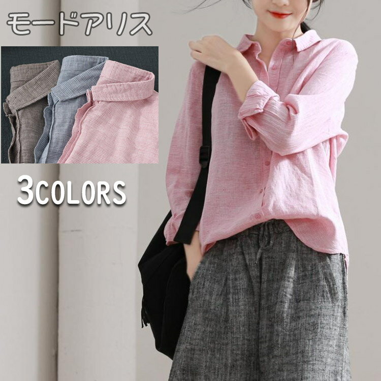 ブラウス コットンリネン素材 長袖 シャツブラウス リネンブラウス オフィス リネン シャツ シンプル 綿麻混シャツ 綿 麻 オフィス 春 シャツ トップス 春 冬 秋 通勤 春 着痩せ 上品 きれいめ 20代 30代 40代 送料無料