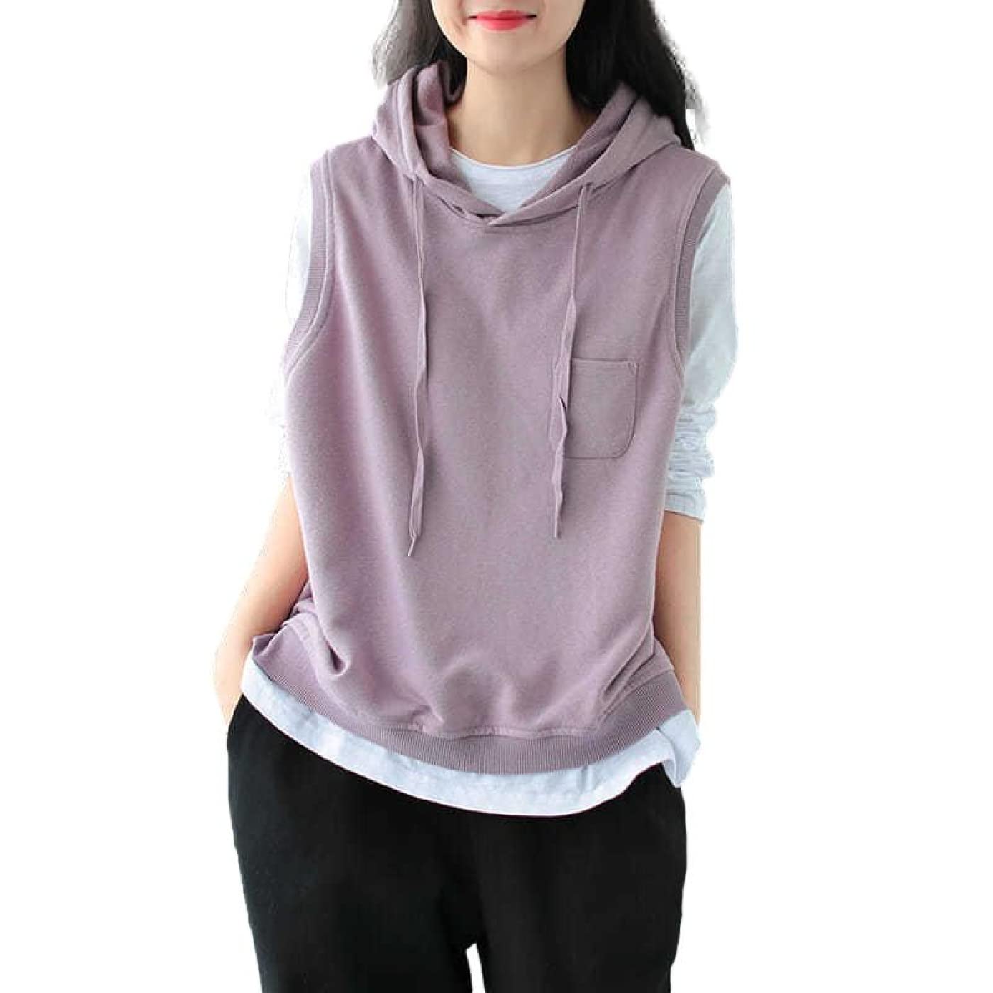 ベスト レディース 春フード付き 袖なしトップス ノースリーブ トレーナー 綿 スポーツウェア 体型カバー ゆったり 薄手 シンプルお洒落 大きいサイズ 無地 通勤 シャレ カジュアル お出かけ