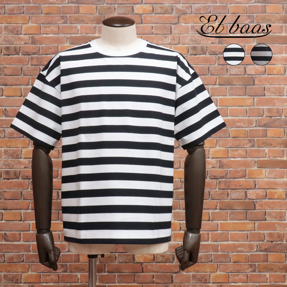 【期間限定P11倍 閉店SALE】【アウトレット】Et baas 半袖Tシャツ 日本製 コットン 綿100% ボーダー カットソー サイドスリット メンズ 紳士 エバース【kf401-10450TAF】