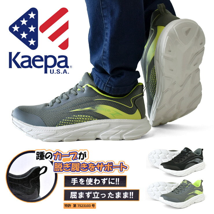 Kaepa ケイパ メンズ スニーカー 立ったまま履ける 特許取得 軽量 靴ひもゴム【D5Y】【送料無料】
