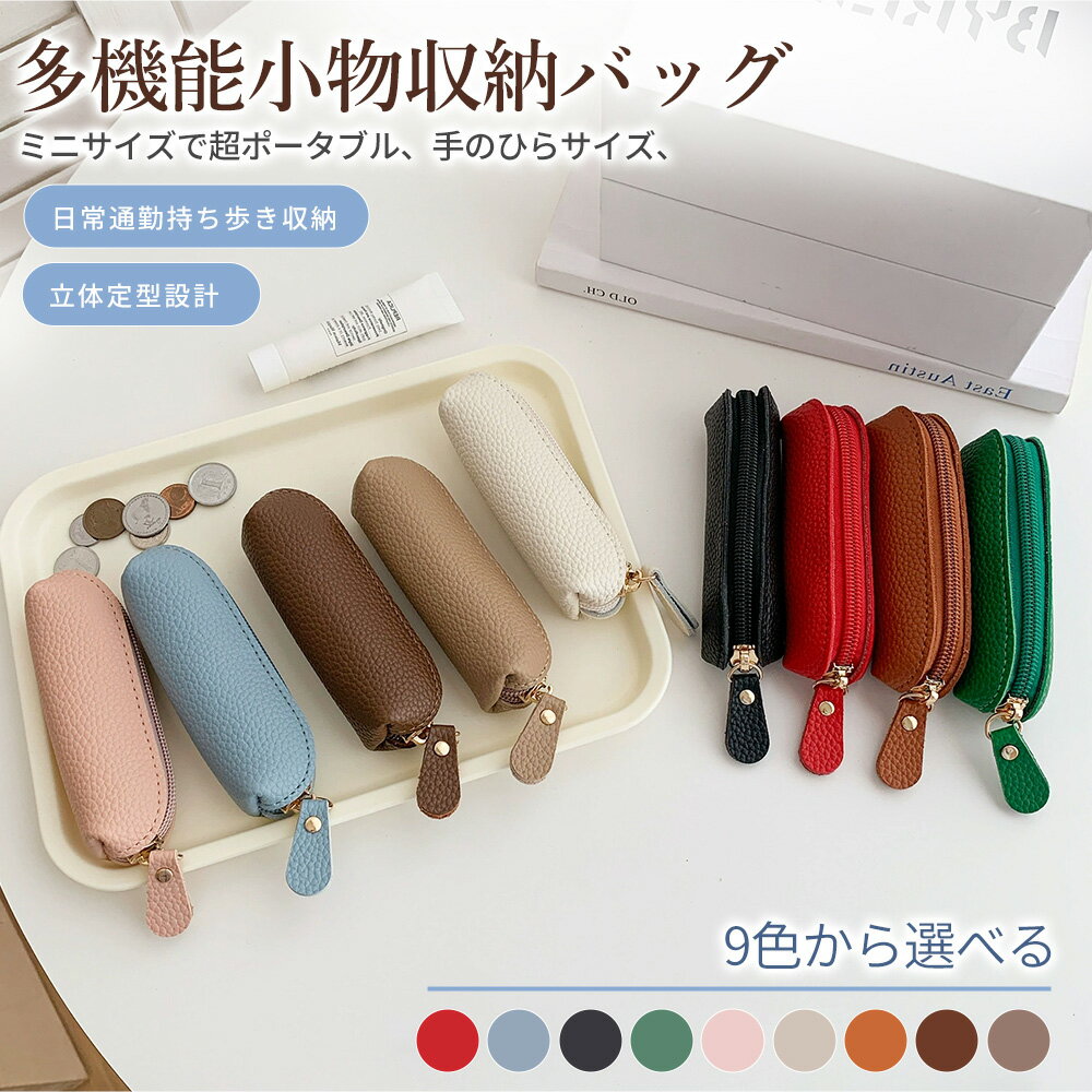 多機能 ミニ小物収納ポーチ コインケース レディース コンパクト リップケース 小銭入れ 鍵入れ 薬入れ PUレザー ファスナー おしゃれ かわいい プレゼント
