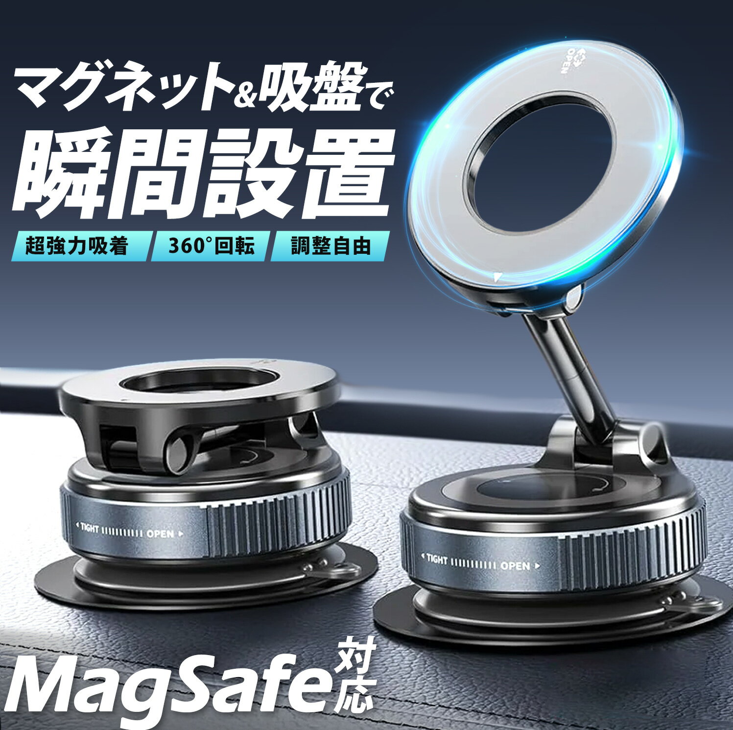 MagSafe対応 車載ホルダー スマホホルダー 真空吸盤 マグネット 超強力 N55 360度回転 角度調整 吸盤式 ダッシュボード iPhone android対応