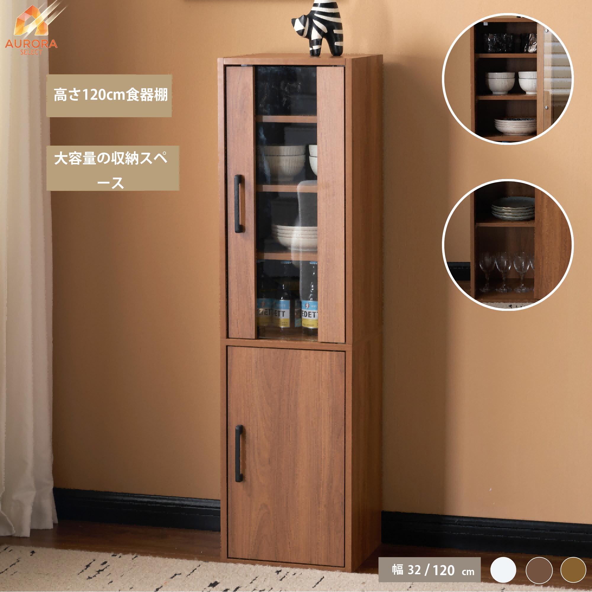 食器棚 高さ120cm コンパクト カップボード ガラス戸 扉付き 収納キャビネット 可動棚 ロータイプ 飾り棚 サイドキャビネット 一人暮らし リビング 書斎 寝室 多用途