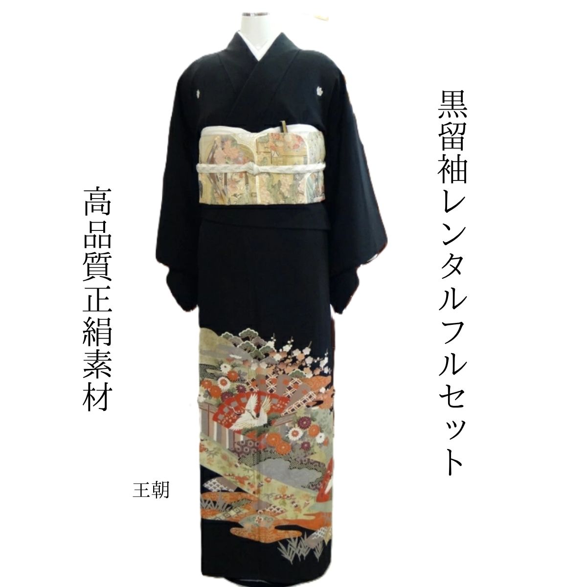 レンタル 王朝 結婚式 黒留袖 黒留 留袖レンタル 貸衣装留袖 フルセット 帯 草履 バック 足袋 小物 着物 結婚式お母さん 往復送料無料 身長145cm~160cm対応 高級正絹素材 お母さんだって立派な主役 上品で華やか おめでたい鶴が祝福の舞を披露します