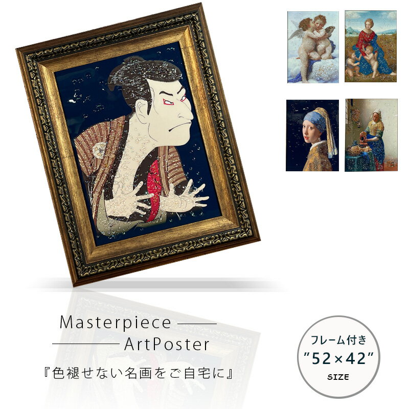 アートポスター アートパネル フレーム付き 絵画 名画 3作品 水晶絵 おしゃれ モダン 42×52cm 壁掛けパネル アート プレゼント リビング 玄関 寝室 寫樂 ラファエロ ブグロー フェルメール 世界の名画シリーズ
