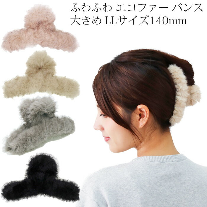 通常価格1,990円! バンスクリップ フェイクファー L Lサイズ 140mm エコファー 大きめ しっかり とまる ヘアクリップ ヘアレンジ アップ まとめ髪 簡単 大きい BIG おしゃれ 髪留めハーフアップかわいい 結婚式 ギフト プレゼント