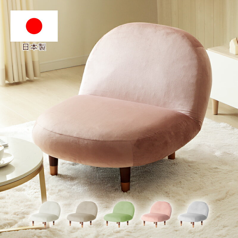ソファ ラウンドソファ 一人掛け ベロア くすみカラー コンパクトソファ 一人暮らし ワンルーム アームレス リクライニング 大人かわいい 高級感 上品 日本製