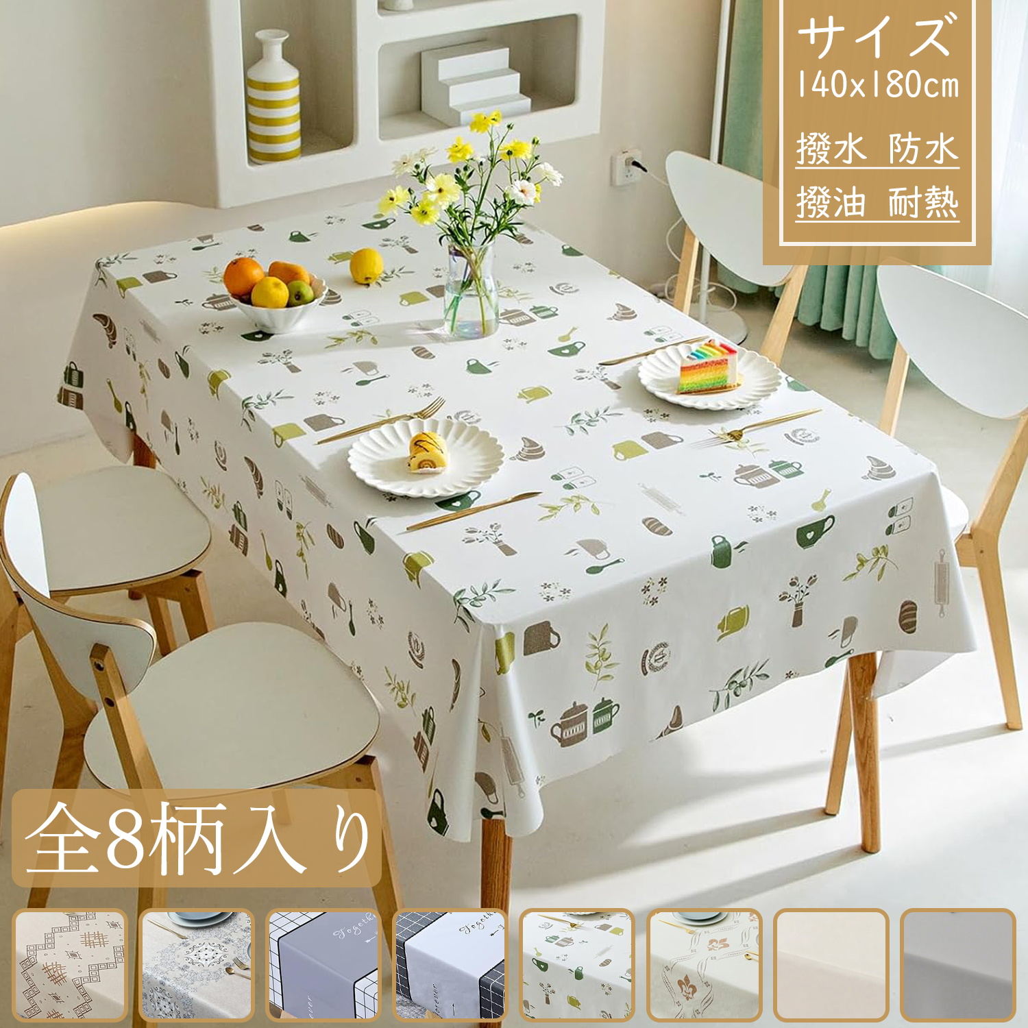 【新春初売り | 5倍P&8%OFF券】 DEWEL テーブルクロス 撥水 PVC製 おしゃれ テーブルカバー 食卓カバー 撥水 防水 撥油 汚れ防止 傷防止 滑りにくい 手入れ簡単 耐久 耐熱 多用途 ずれにくい カット可能 長さ調節可 厚手 140x180cm 家庭用 業務用 モノトーン リビング