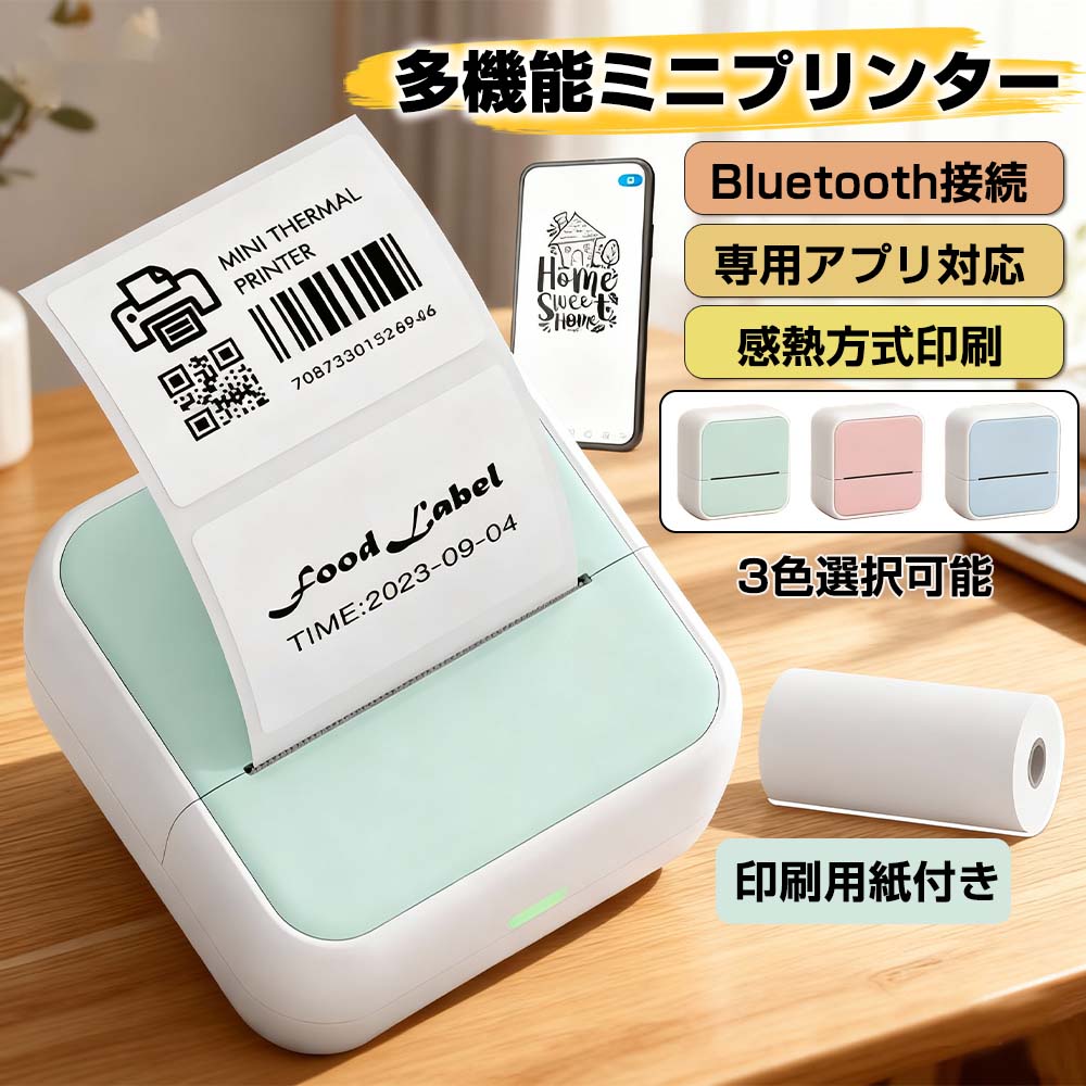 ミニプリンター ラベルプリンター スマホ用 サーマルプリンター ポータブルプリンタ 小型プリンター シールプリンター家庭用 フォトプリンター コンパクト Bluetooth接続