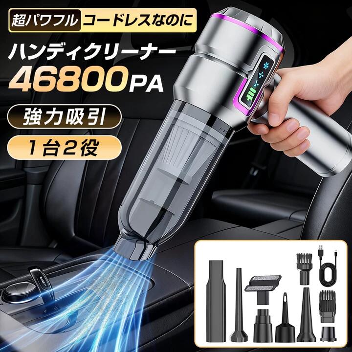 350円クーポン!ハンディクリーナー 車 掃除機 46800pa コードレス掃除機 3段階調整 空気入れ DCスモーター充電式 静音 強力吸引 小型 家庭用 耐用 車載掃除機 充電式 多機能
