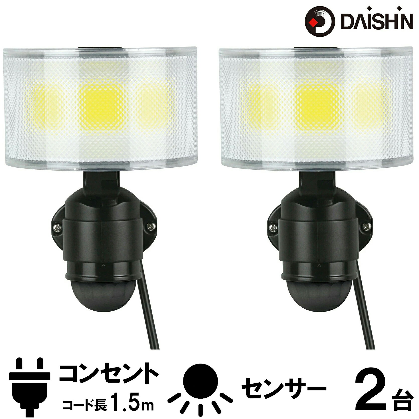2台セット センサーライト コンセント式 屋外用 大進 人感 LED AC 100V 電源 防犯ライト 外灯 防水規格 防雨型 人感センサーライト 外 駐車場 ガレージ 庭 明るい 広範囲 ネジ止め 家庭用コンセント 明り 軒下 物置 調整 強力 屋外用センサーライト 強力 防犯ライト