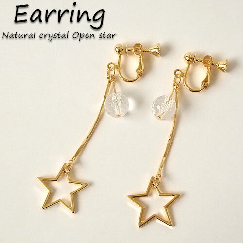 【新着入荷】イヤリング 水晶×星形チャームイヤリング レディース 両耳用 1ペア販売 真鍮 16金コーティング ぶら下がり 揺れる キラキラ 流れ星 ネジ&バネ式マルチイヤリング 送料無料 【RCP】