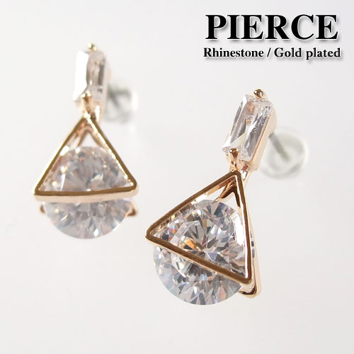 ピアス トライアングル キュービックジルコニア レディース 両耳用 1ペア販売 合金 ゴールド ジルコニア トライアングルカット クリア ピンク パープル 王冠台座 キラキラ オールシーズン 【RCP】