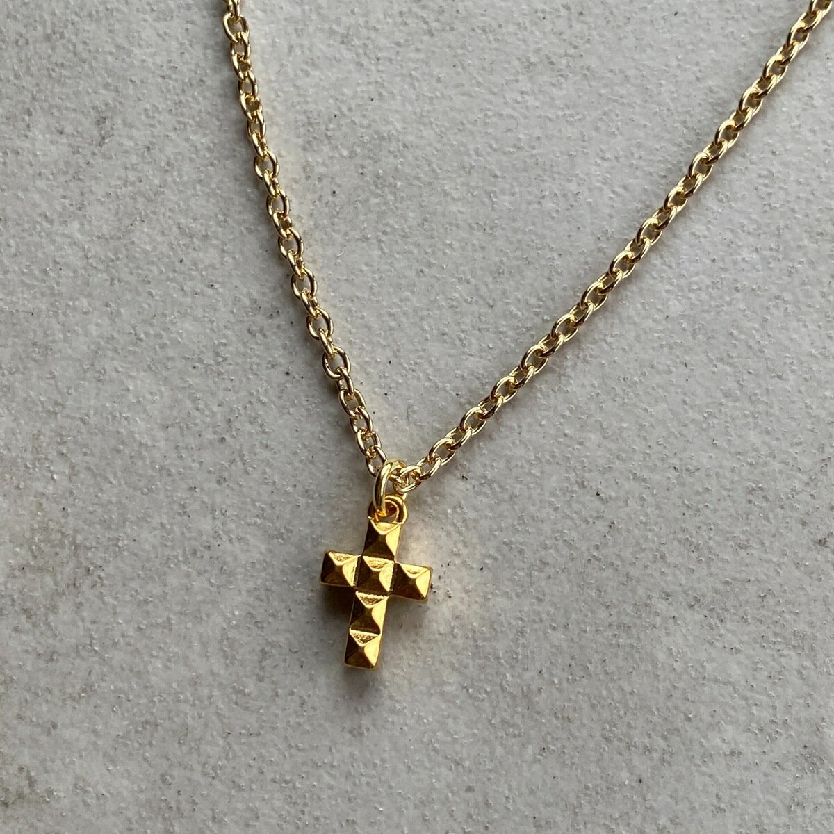 【ゴールド】シンプル クロスネックレス 50cm メンズ レディース 兼用 アクセサリー ファッション アパレル アイテム ワンポイント 十字架 50センチ 小豆チェーン カジュアル フォーマル モード HIPHOP 万能アクセサリー