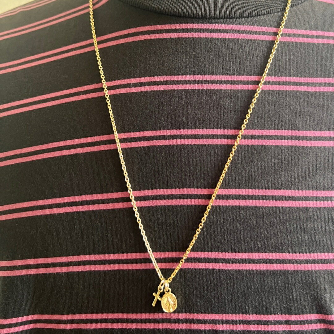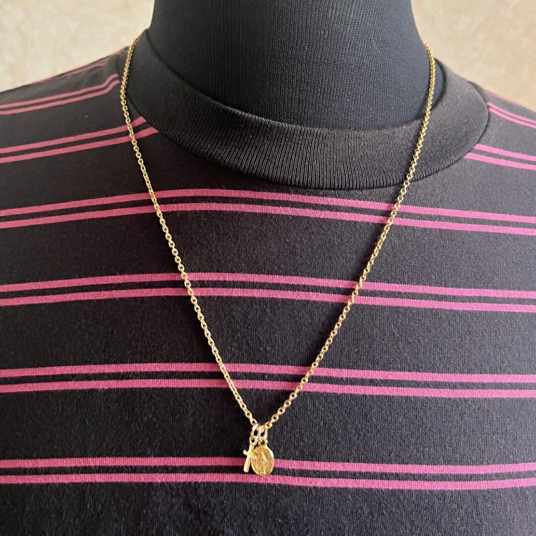 ゴールド マリアメダイ&クロスネックレス ダブルチャームネックレス 50cmメンズ レディース チェーンネックレス アクセサリー ファッション アイテム おしゃれ 流行 金 小豆チェーン シンプルネックレス ワンポイント ベーシックサイズ
