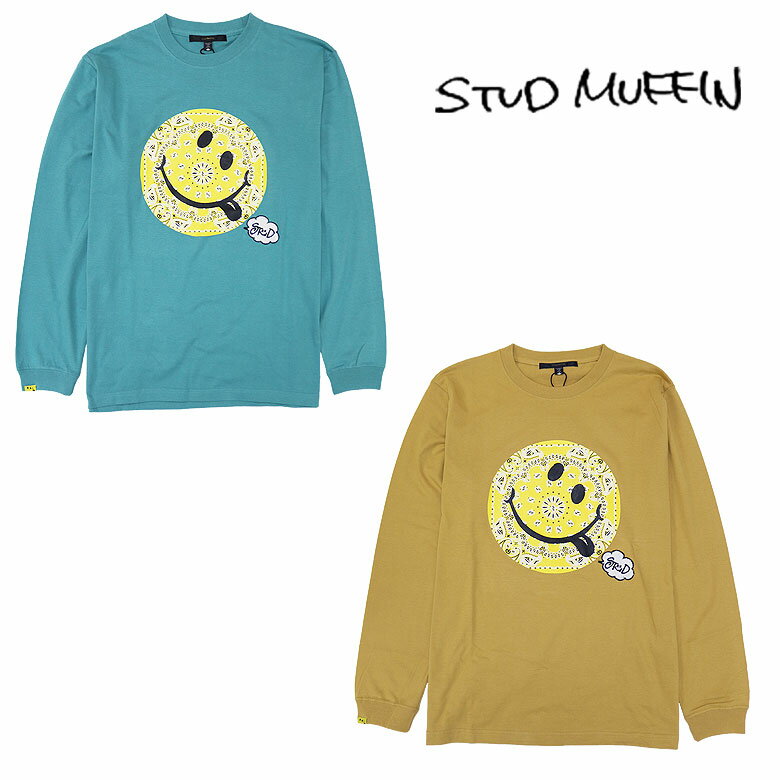 【STUD MUFFIN】スタッドマフィン Tシャツ 長袖 カットソー 5.6ozコットン天竺 バンダナ スマイル フォームプリント ハンドニットパッチ メンズ ファッション