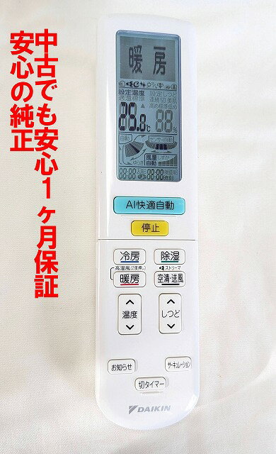 【中古】即日発送 除菌済 ARC472A113 ダイキン エアコン リモコン (AN22ZABKS-W AN25ZABKS-W AN28ZABKS-W AN36ZABKS-W AN40ZABKP-W AN56ZABKP-W AN63ZABKP-W AN71ZABKP-W AN80ZABKP-W AN90ZABKP-W 対応) 長期保証 (2539814)