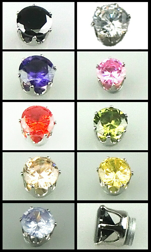 6mm/7mm/8mmカラーストーンマグネットピアス(2個セット)