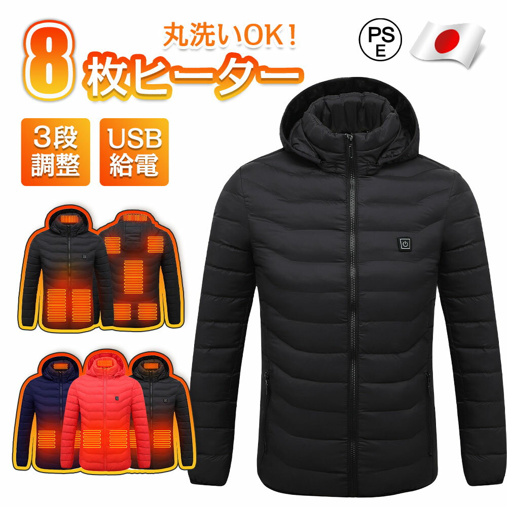 電熱ジャケット ワークマン ヒータージャケット 8つヒーター付き メンズ 電熱ジャケットコート 電熱ウェア 長袖 加熱ジャケット 電気ジャケット 発熱 加熱服 USB充電式電熱ベスト 3段階中綿ジャケット アウター トップス 防寒 臭くない 丸洗い可能 通勤通学 PSE認証済